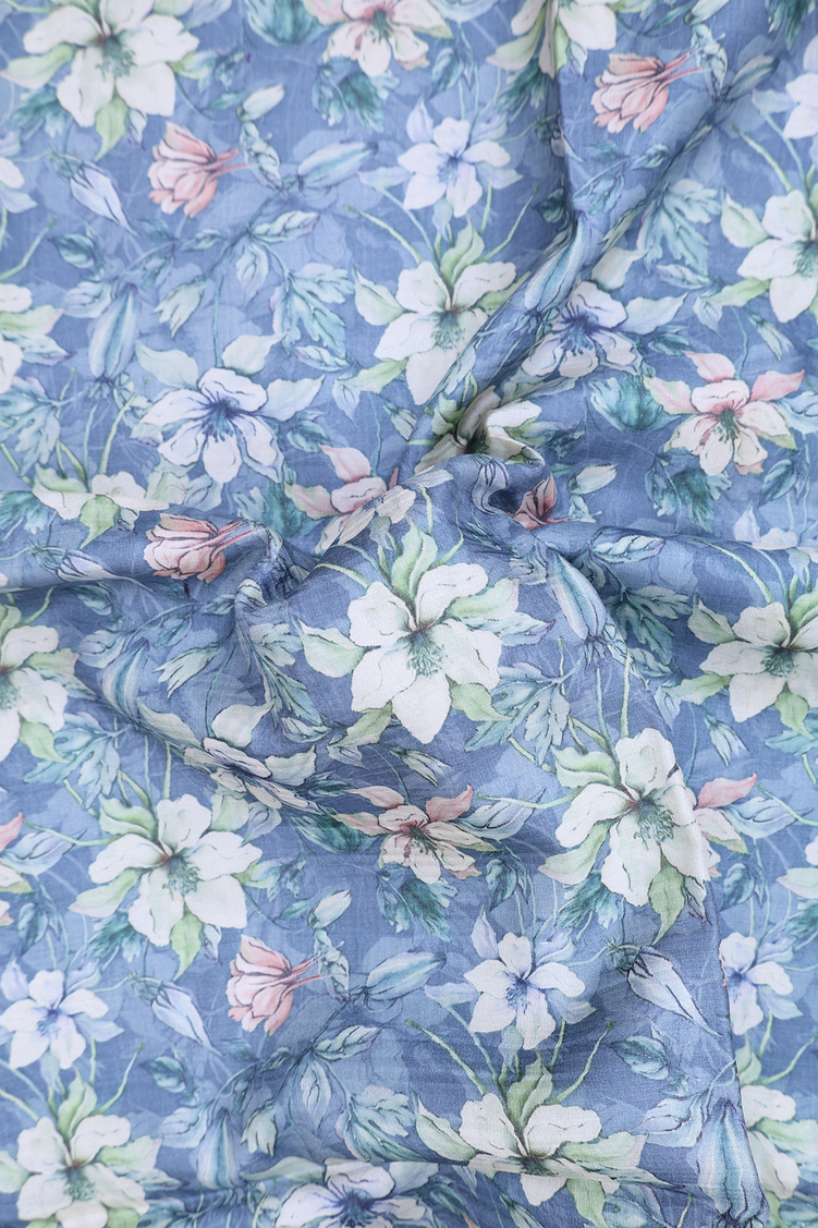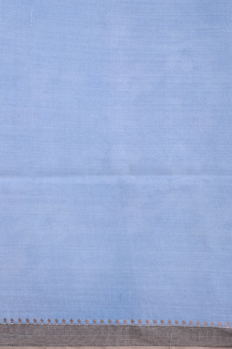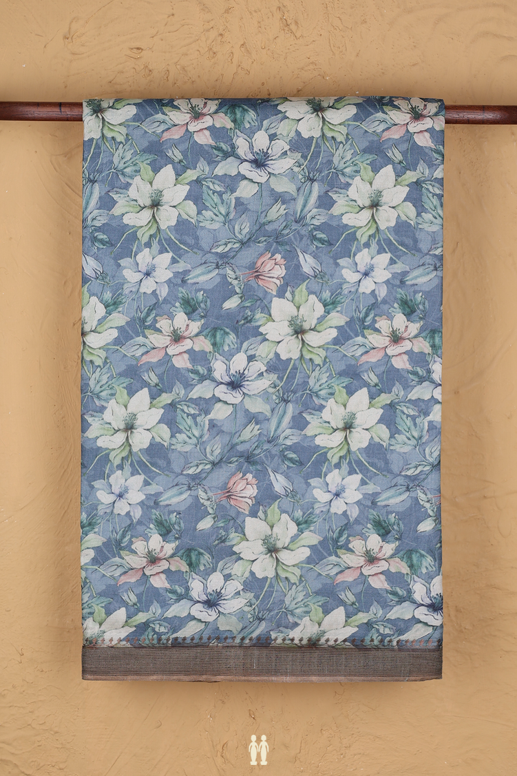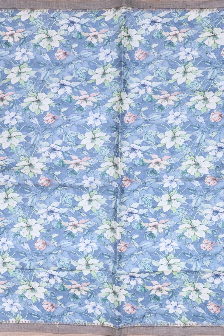 Tussar Silk Saree In Dusty Blue With Floral Design