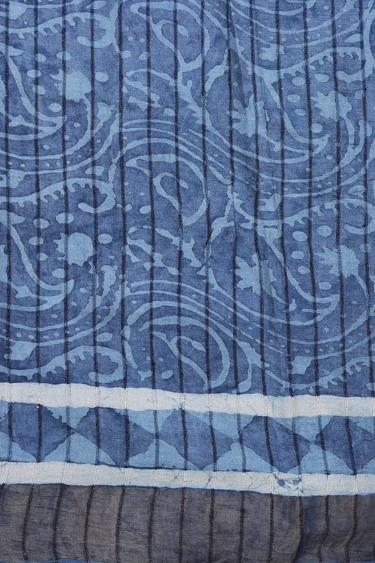 Tussar Silk Saree In Dusty Blue With Paisley Design