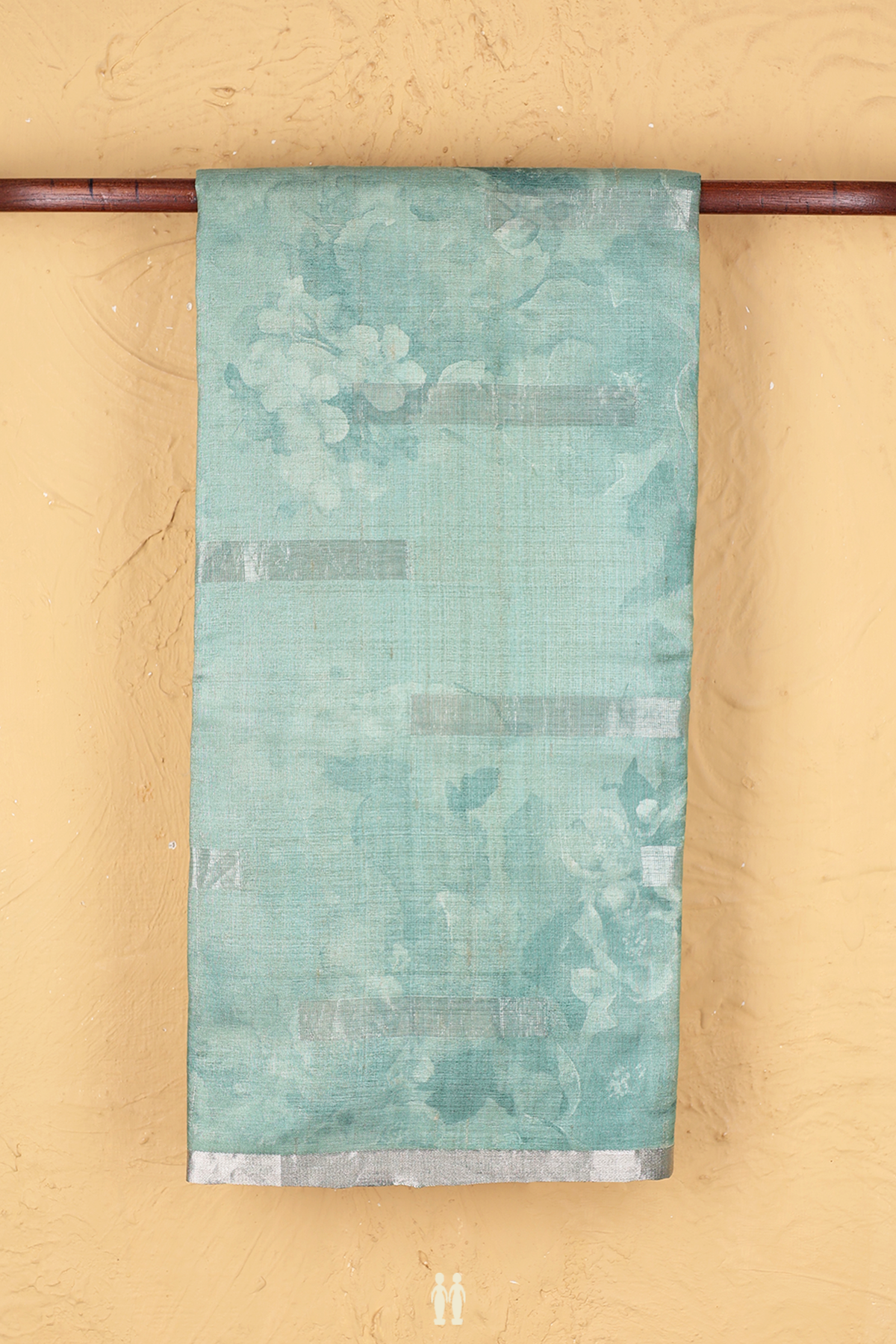 Tussar Silk Saree In Dusty Green With Floral Design