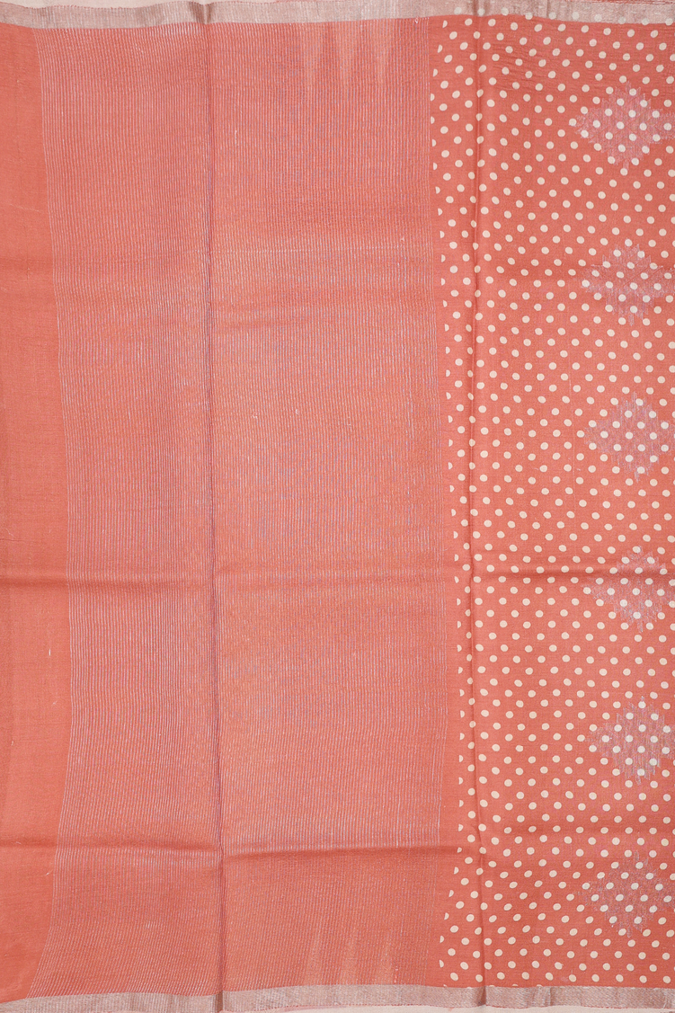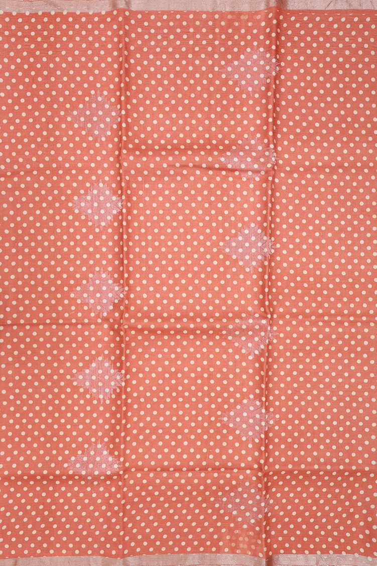 Tussar Silk Saree In Dusty Orange With Circle Design