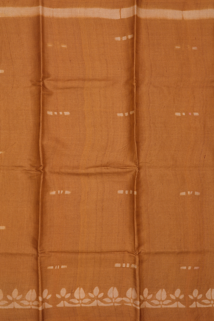Tussar Silk Saree In Ginger Orange With Printed Buttas