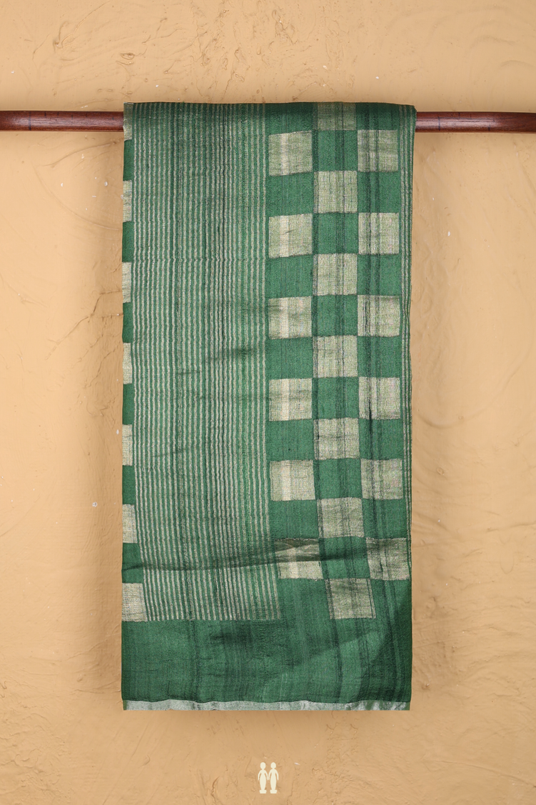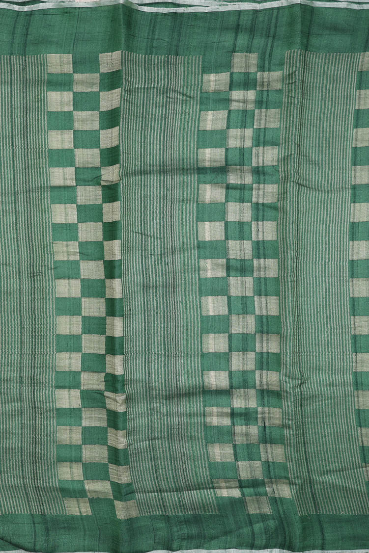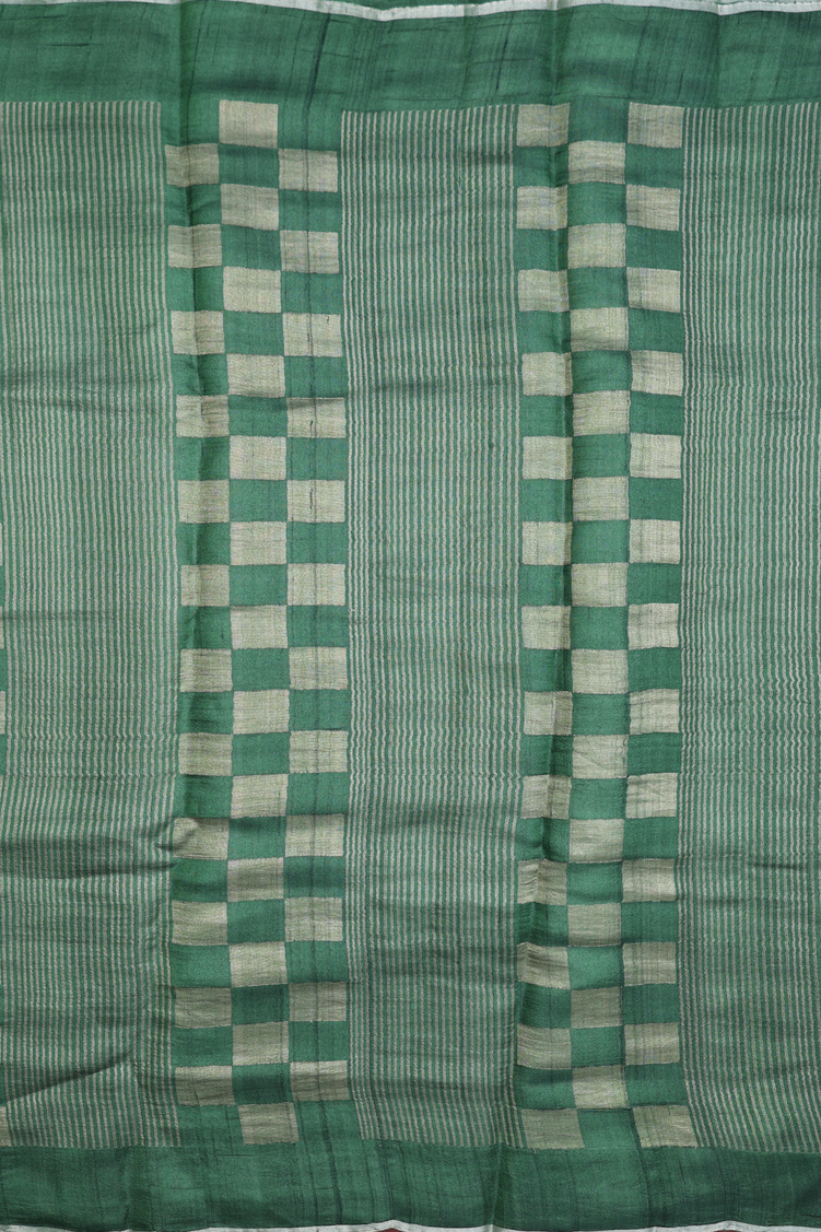 Elevate your elegance with this exquisite green tussar silk saree, featuring a delicate allover design that adds subtle texture and charm. Crafted from premium Tussar silk, it offers a graceful drape and a natural sheen, perfect for sophisticated occasions. This saree combines traditional craftsmanship with timeless style, making it a refined choice for your wardrobe.