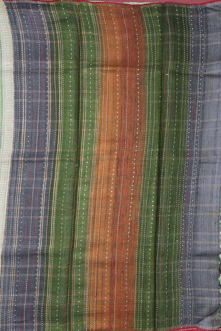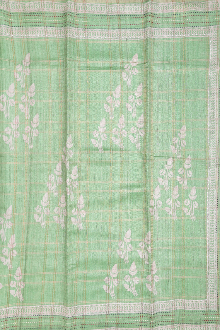 Elevate your ethnic wardrobe with this exquisite Tussar silk saree in a refined green hue, adorned with a timeless checks design. Tussar silk's natural texture and subtle sheen create an understated elegance perfect for both festive occasions and refined everyday wear. The geometric check pattern adds visual interest while maintaining a classic aesthetic.