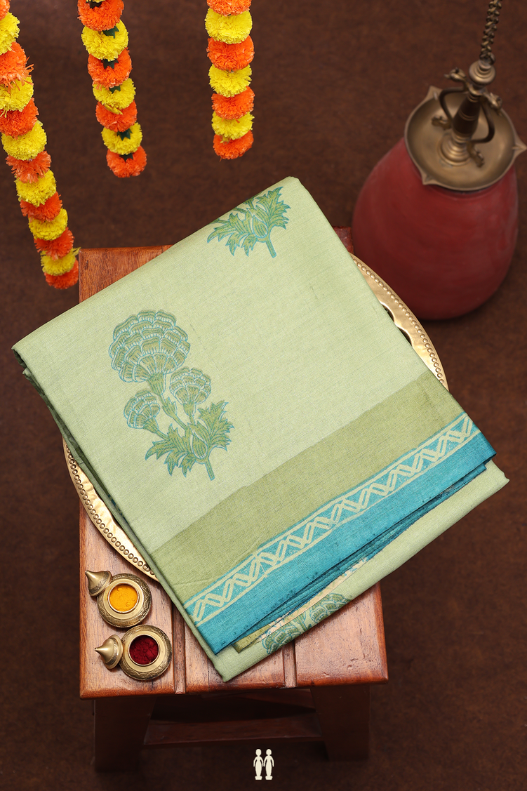 This elegant green tussar silk saree features a delicate floral design that enhances its timeless appeal. Crafted from breathable tussar silk, it offers a soft texture and natural sheen, perfect for sophisticated occasions. The intricate floral pattern adds a subtle charm, making it an exquisite choice for both traditional and contemporary wardrobes.