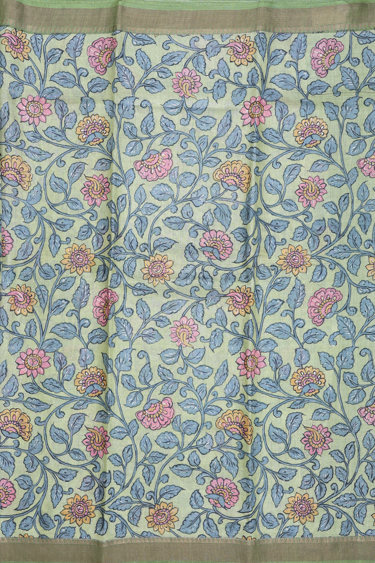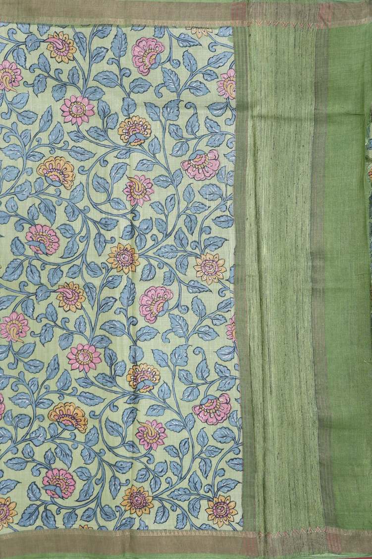 Elevate your ethnic wardrobe with this exquisite Tussar silk saree in a serene green hue. The fabric's natural texture and subtle sheen showcase the inherent beauty of pure tussar silk, while delicate floral motifs add timeless elegance. Perfect for festive occasions, celebrations, or refined everyday wear, this saree drapes gracefully and offers comfortable breathability.Â