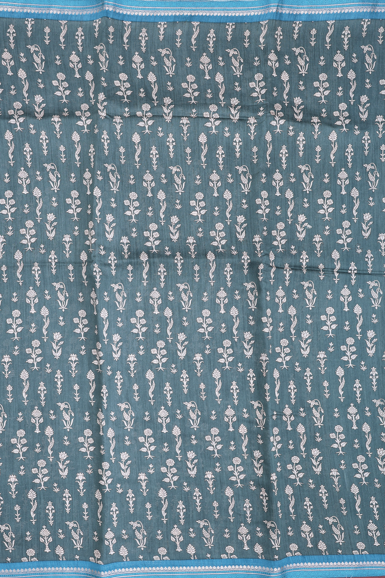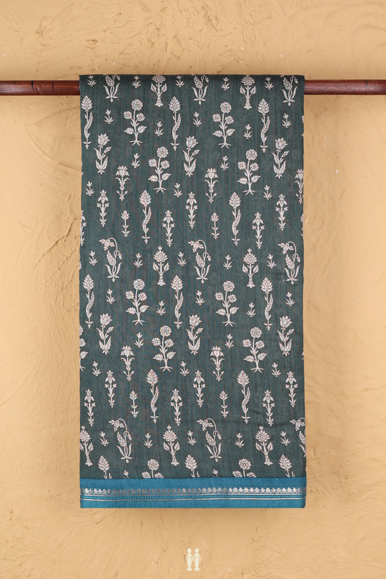 Tussar Silk Saree In Green With Floral Design