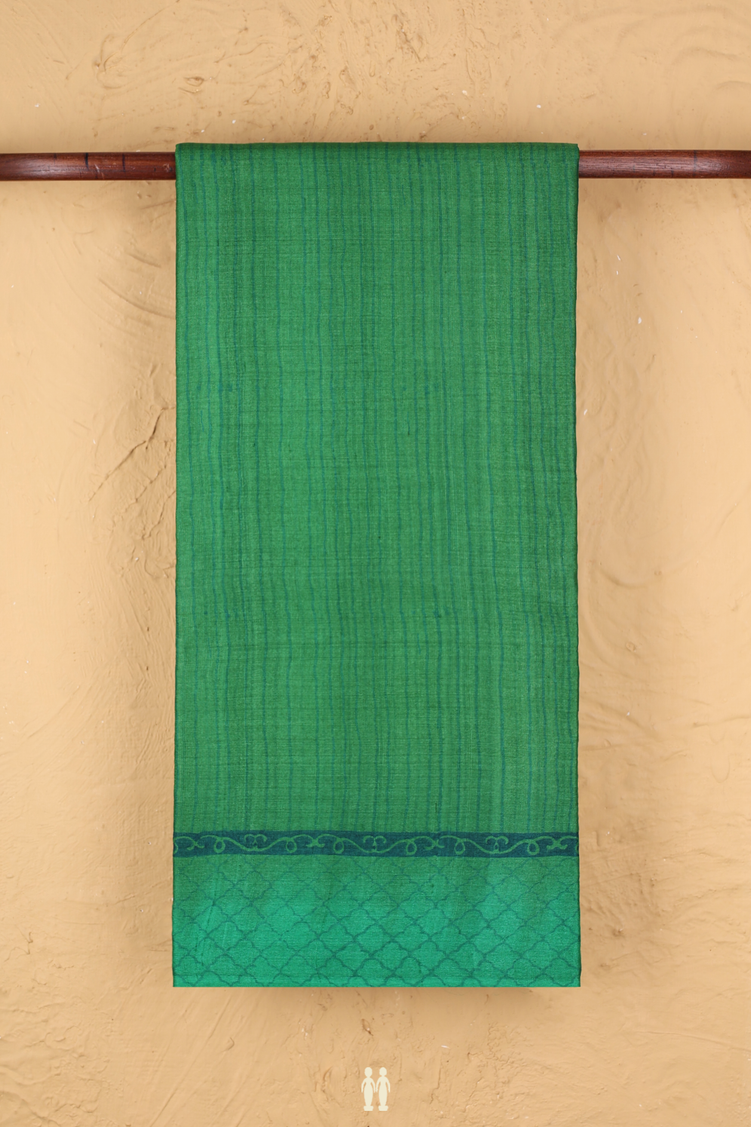 Elevate your ethnic wardrobe with this exquisite tussar silk saree, a timeless piece that celebrates traditional craftsmanship. The rich green hue is complemented by elegant stripe detailing, creating a refined aesthetic perfect for both festive occasions and formal gatherings. Tussar silk's natural texture and subtle sheen offer unparalleled comfort and breathability, making it ideal for India's warm climate.Â
