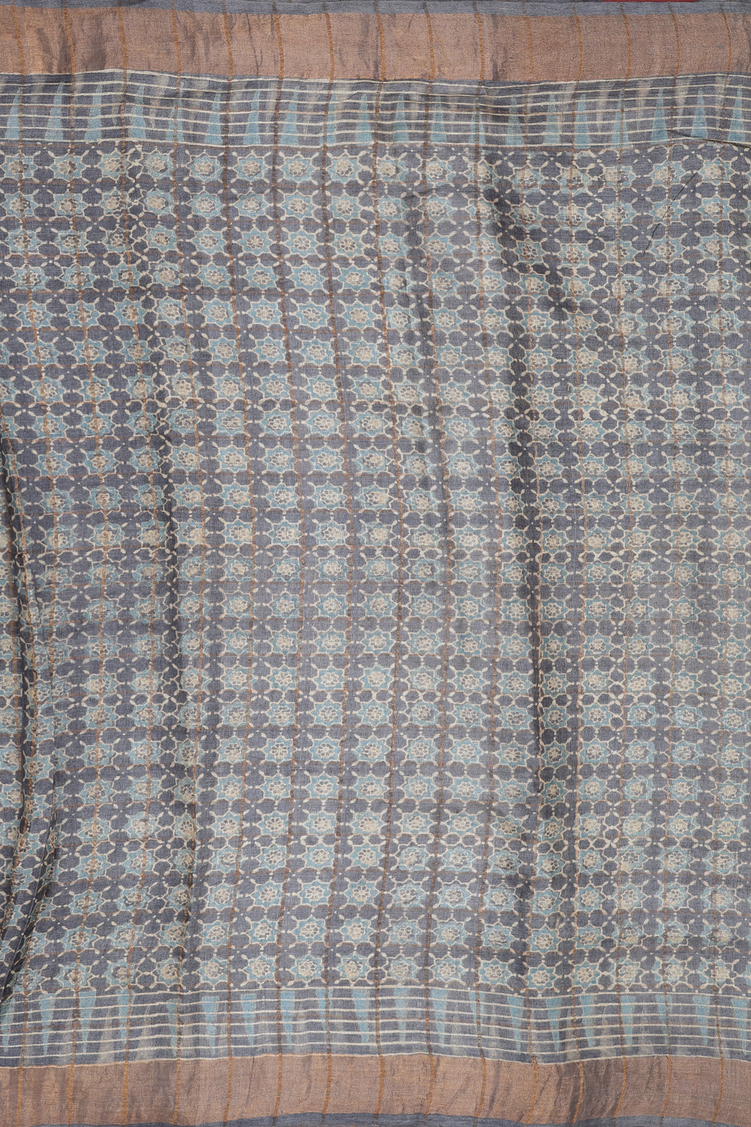 Tussar Silk Saree In Grey With Allover Design