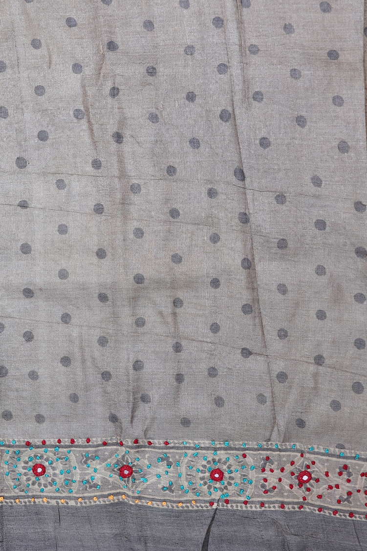 Experience timeless elegance with this tussar silk saree in a refined grey shade, adorned with intricate printed designs. The natural texture of Tussar silk adds subtle luster and a graceful drape, making it perfect for formal occasions or festive gatherings. This saree combines traditional craftsmanship with contemporary style, offering a sophisticated look that enhances your presence effortlessly.