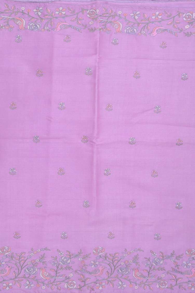 Tussar Silk Saree In Lavender With Embroidered Floral Buttas