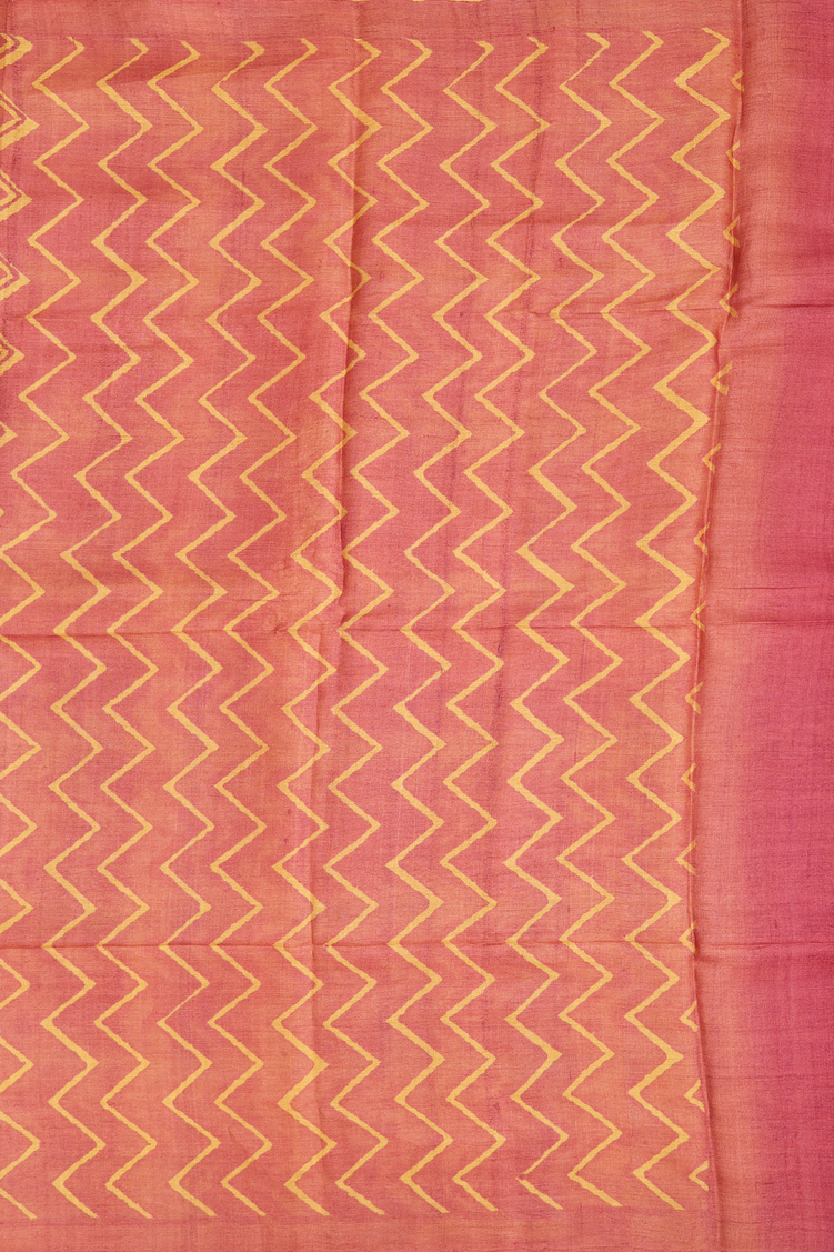 Tussar Silk Saree In Ochre Orange With Chevron Design