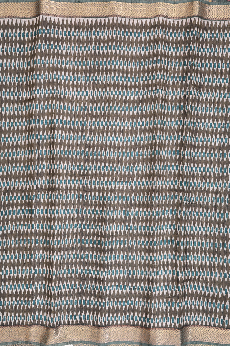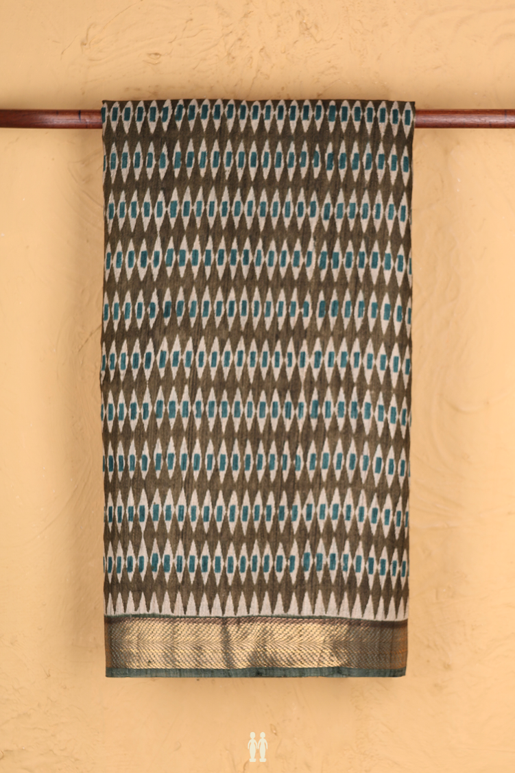 Tussar Silk Saree In Olive Green With Printed Design