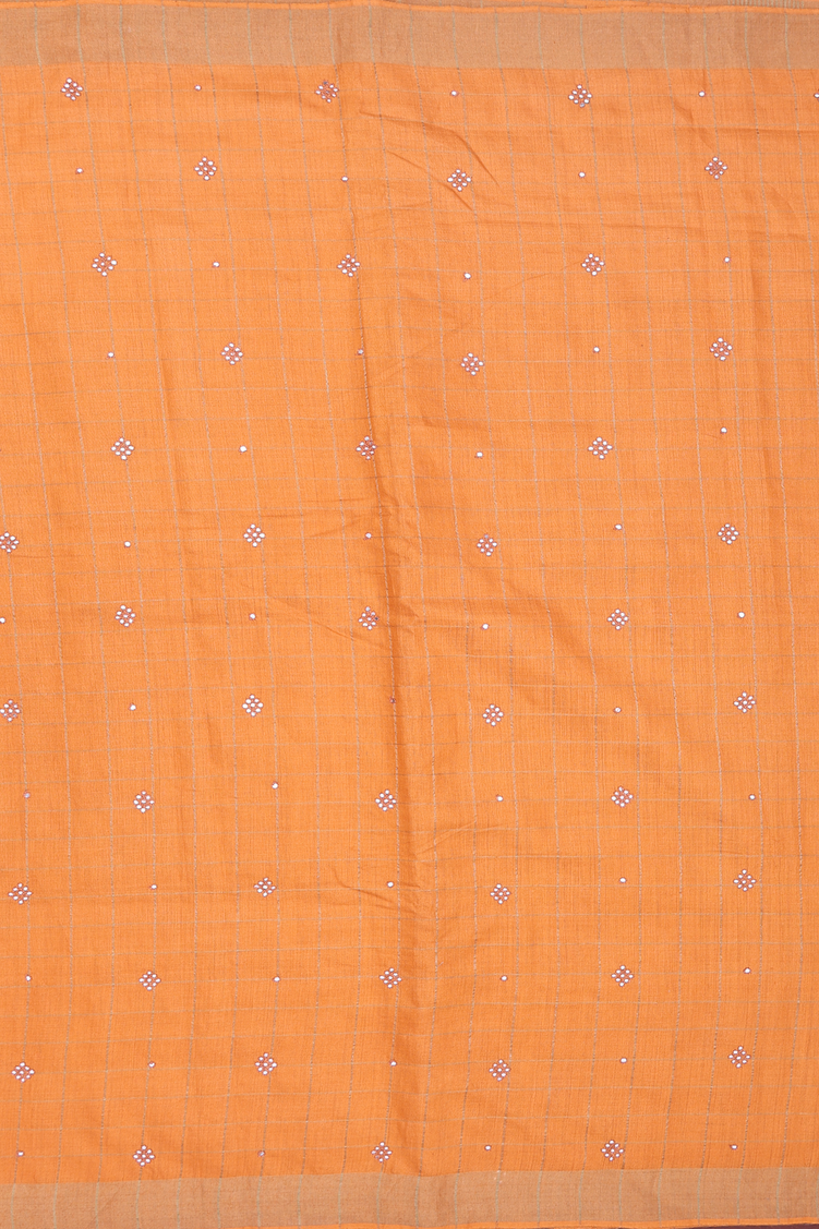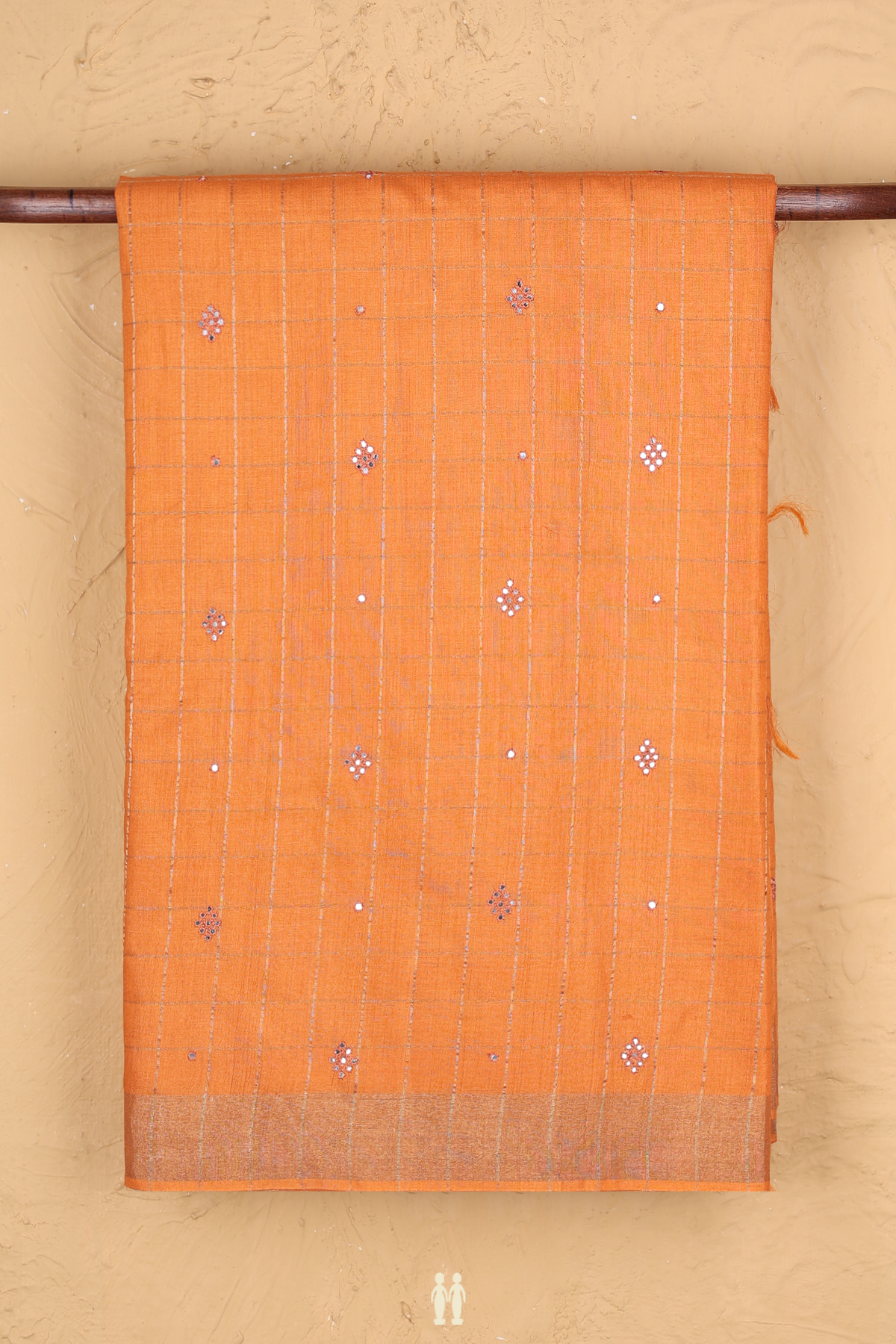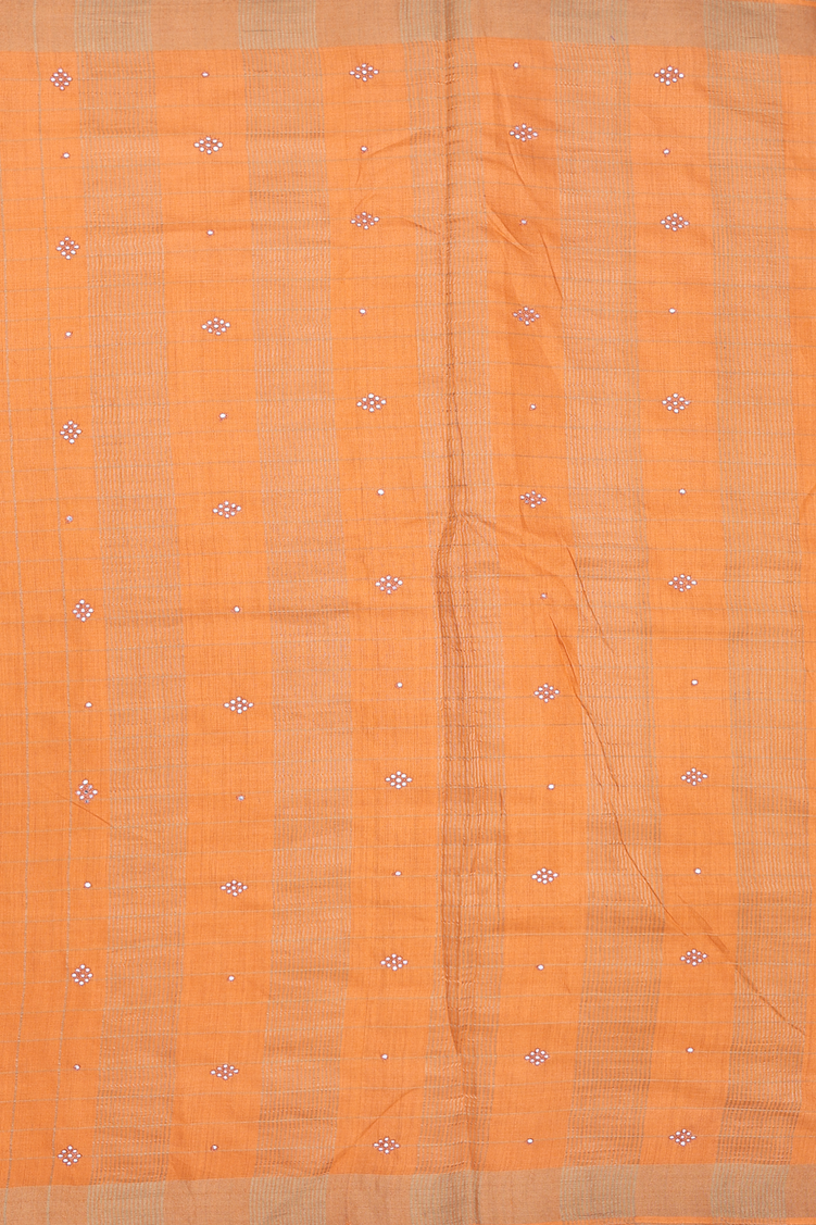 Embrace timeless elegance with this tussar silk saree in a vibrant orange shade, featuring a classic checks design. Its rich texture and subtle sheen enhance your grace, making it perfect for formal occasions or festive celebrations. The lightweight fabric ensures comfort while the intricate pattern adds a refined touch to your ensemble.
