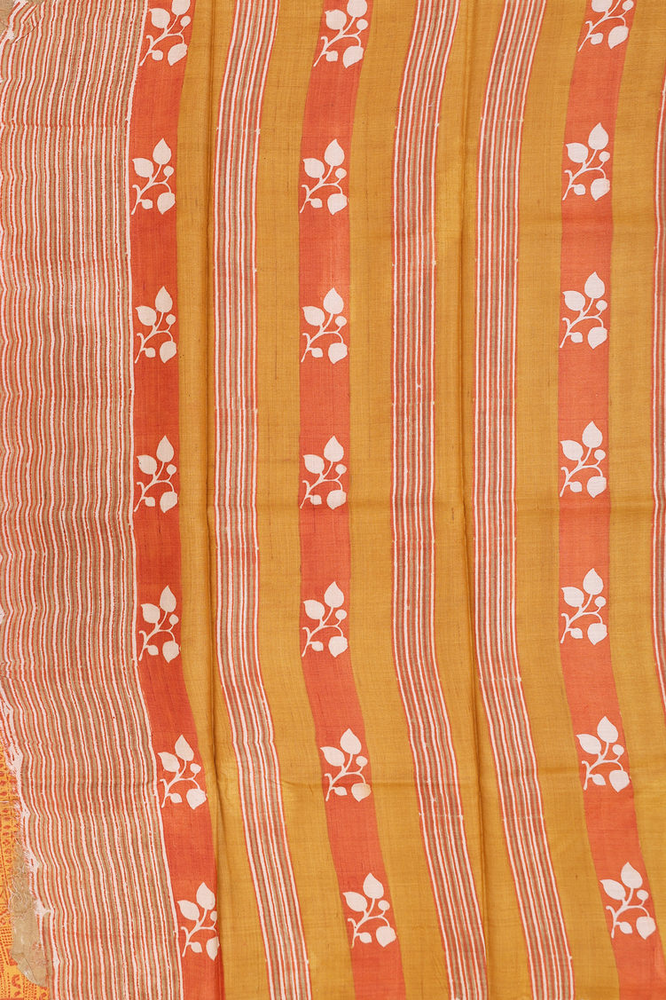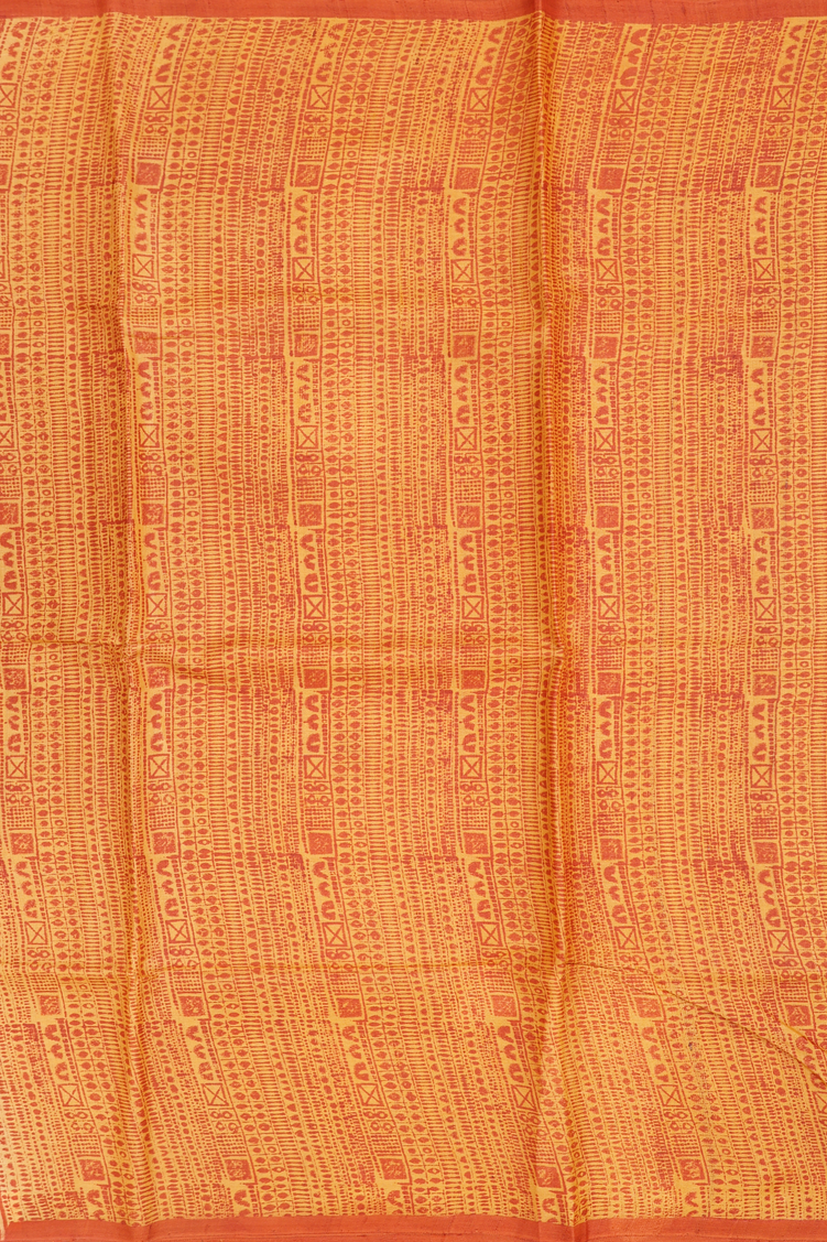 Elevate your ethnic wardrobe with this exquisite tussar silk saree in a warm orange hue. Crafted from premium tussar silk, known for its natural texture and lustrous finish, this saree features an elegant printed design that adds contemporary flair to traditional elegance. The fabric drapes beautifully, offering both comfort and grace for special occasions and celebrations. Perfect for those who appreciate the timeless appeal of silk sarees with a modern artistic touch.