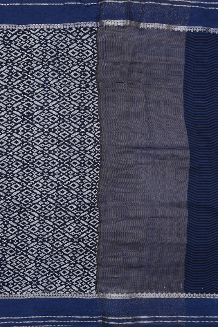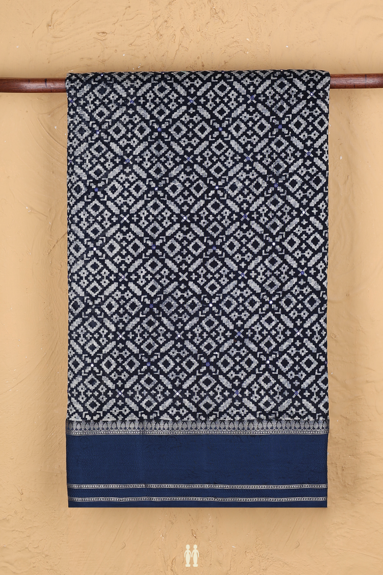Tussar Silk Saree In Oxford Blue With Printed Design