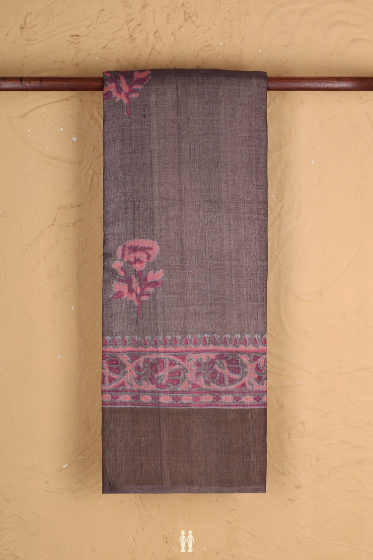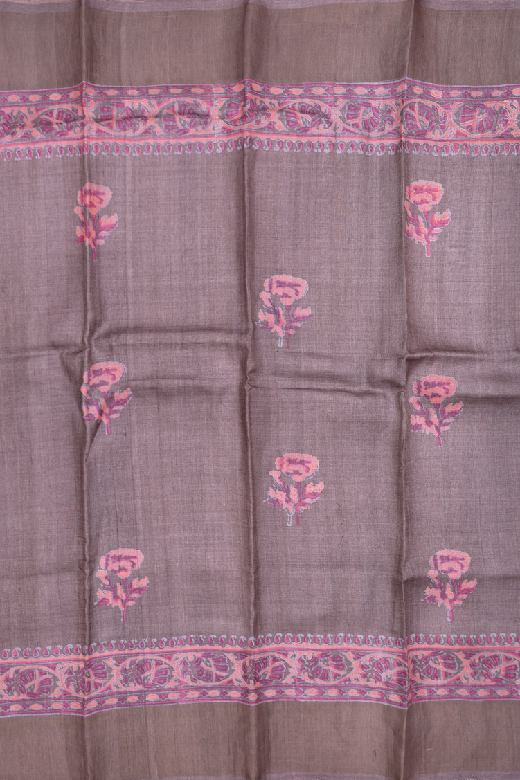 Tussar Silk Saree In Oxford Brown With Floral Design