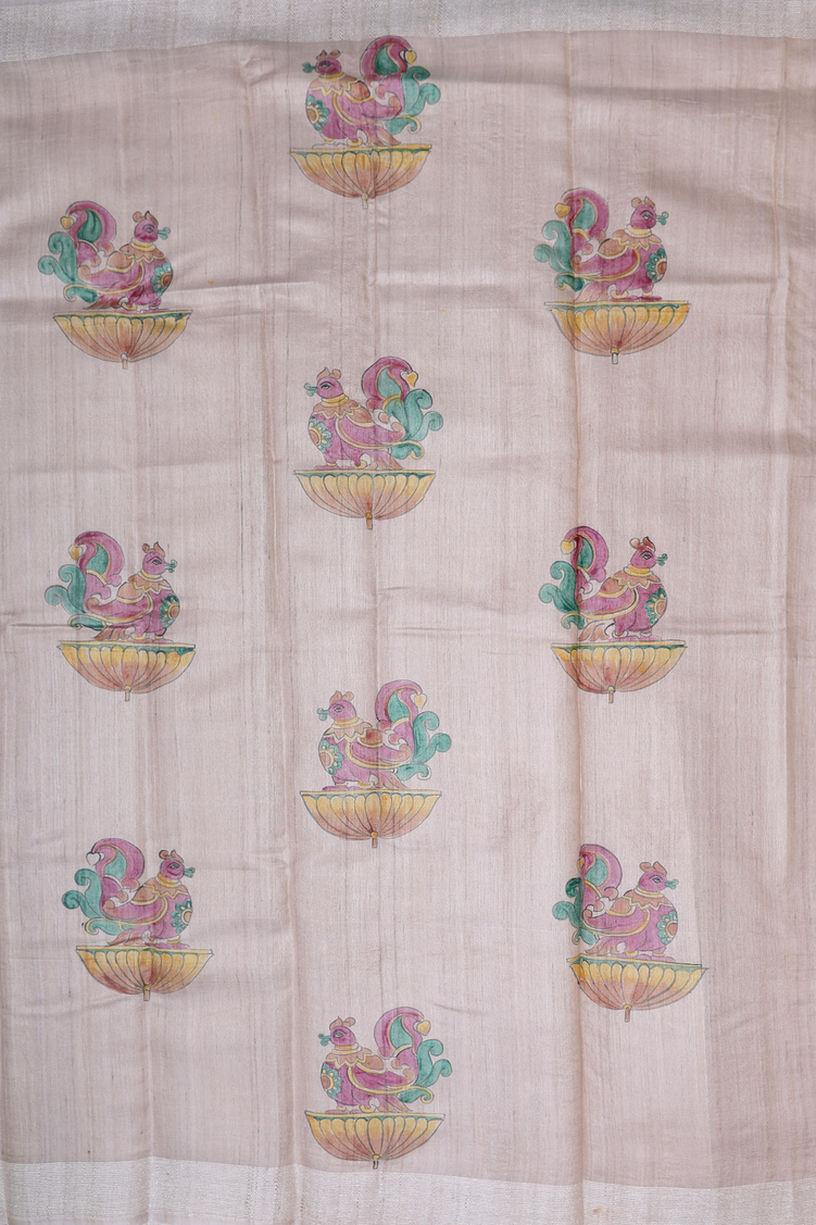 Tussar Silk Saree In Pastel Brown With Hand Painted Design