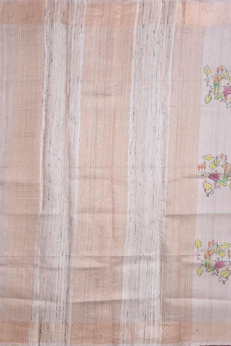 Tussar Silk Saree In Pastel Brown With Hand Painted Design