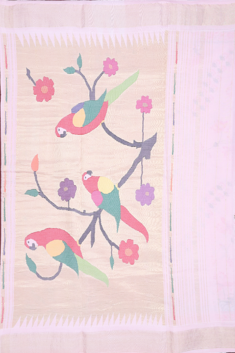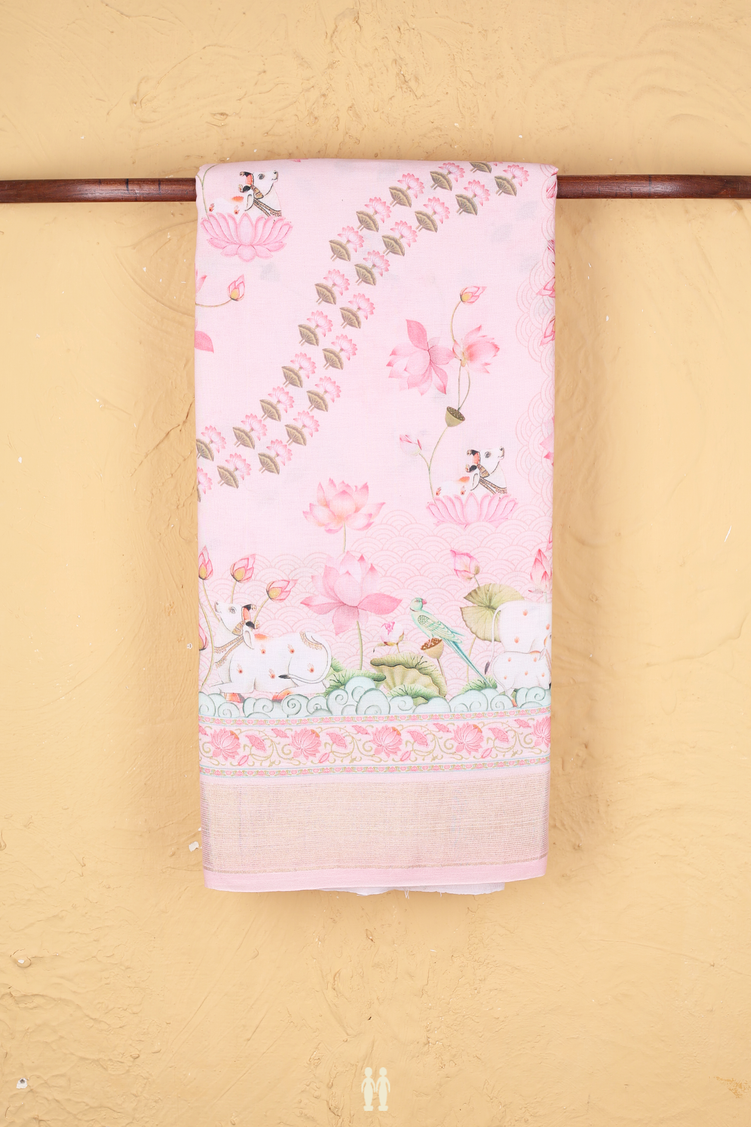 Tussar Silk Saree In Pastel Pink With Printed Design