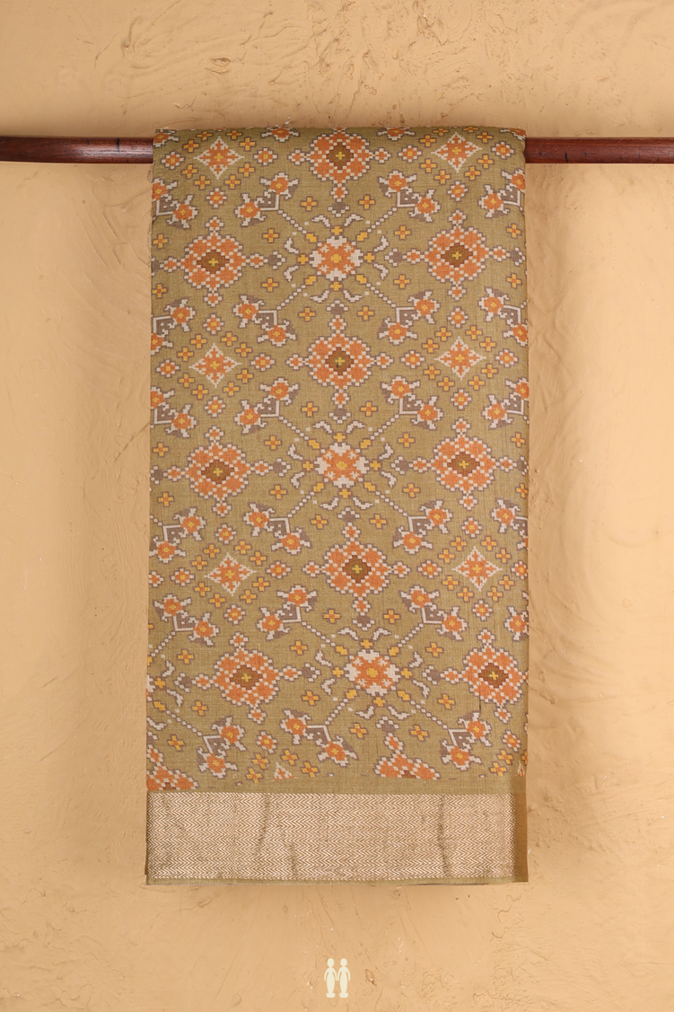Tussar Silk Saree In Peanut Brown Printed Design
