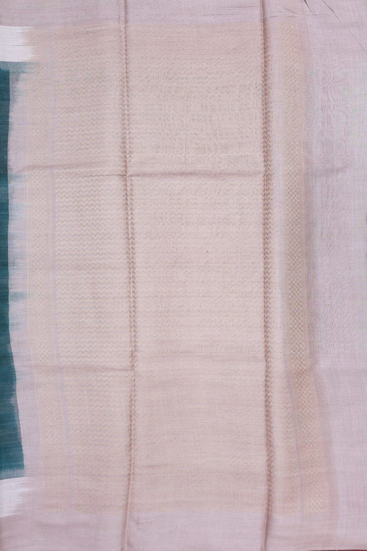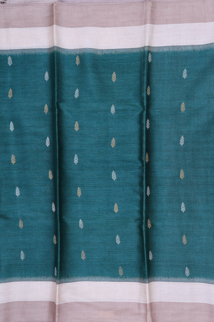 Tussar Silk Saree In Pine Green With Zari Buttas