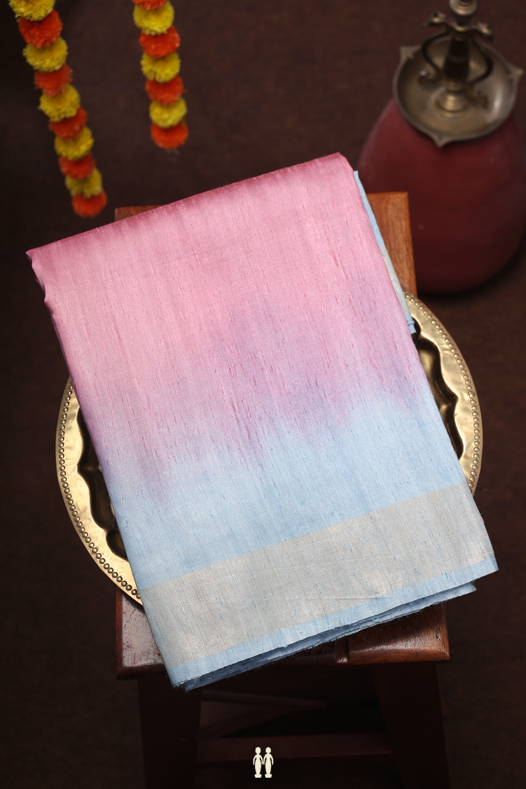 Experience timeless elegance with this pink tussar silk saree featuring a striking contrast border. The natural texture of Tussar silk offers a graceful drape, perfect for formal occasions or celebrations. Its subtle sheen and refined craftsmanship ensure you stand out with understated sophistication.