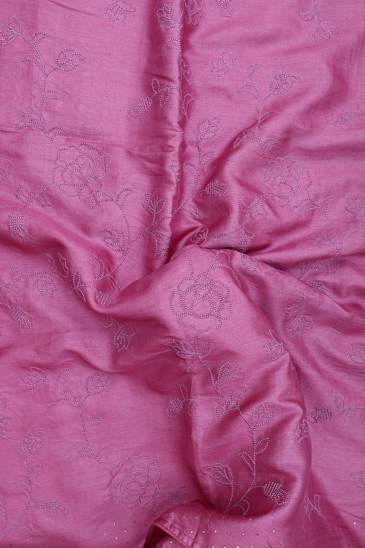 Tussar Silk Saree In Pink With Floral Embroidered Design