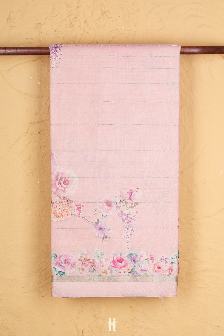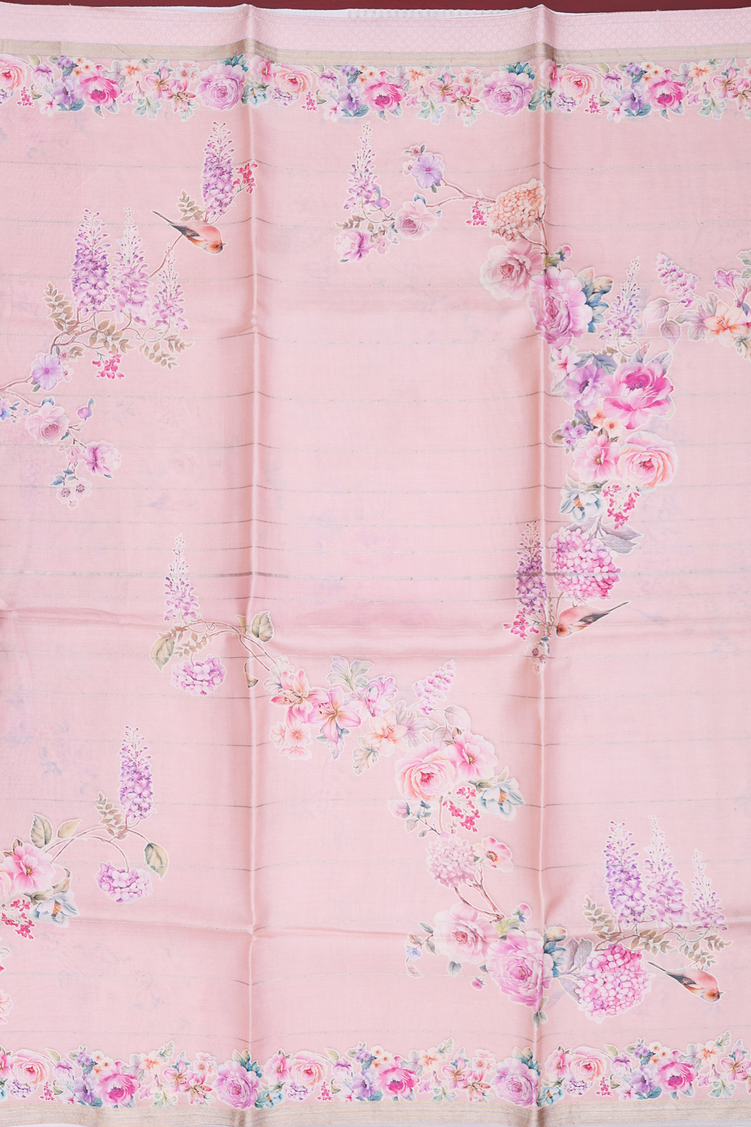 Embrace timeless elegance with this exquisite tussar silk saree in soft pink, adorned with delicate floral prints that celebrate traditional craftsmanship. The natural lustre of tussar silk drapes gracefully, creating an effortlessly sophisticated silhouette perfect for festive occasions and celebrations. Each floral motif is thoughtfully designed to complement the fabric's inherent texture, offering a refined aesthetic that transcends seasons. Ideal for those who appreciate the marriage of heritage weaving techniques with contemporary style.