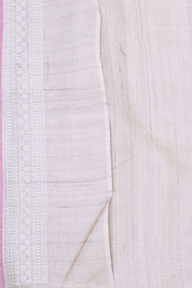 Tussar Silk Saree In Pink With Threadwork Design