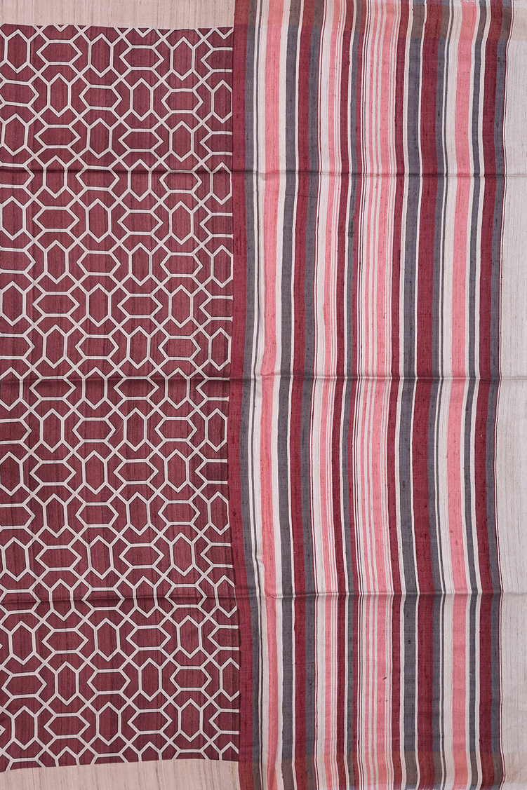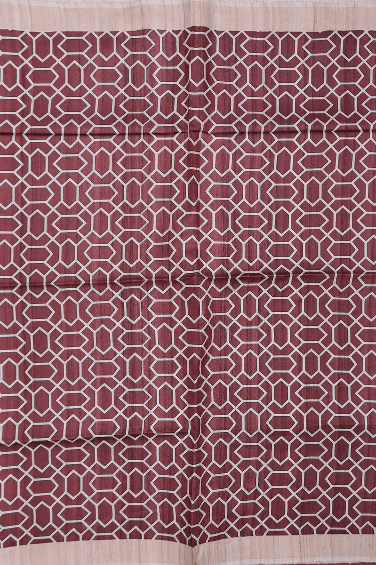 Tussar Silk Saree In Plum Brown With Allover Design