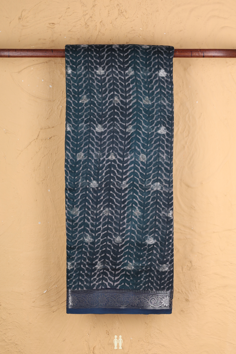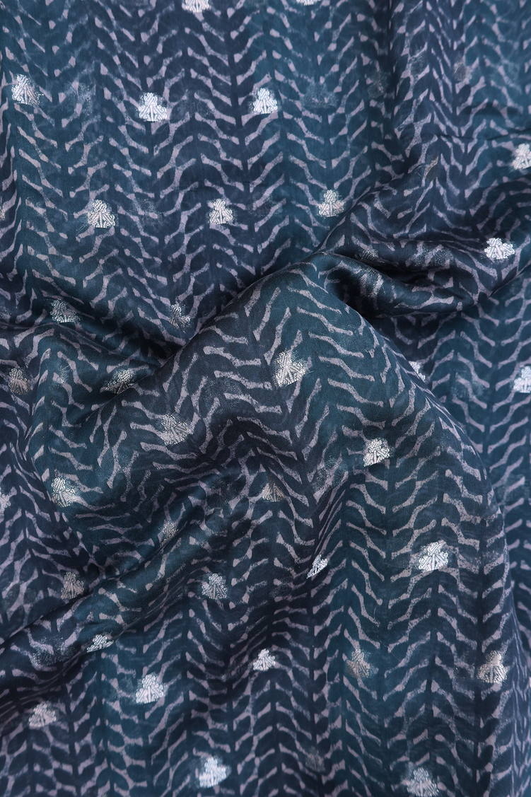 Chanderi Cotton Saree In Prussian Blue With Zari Buttas