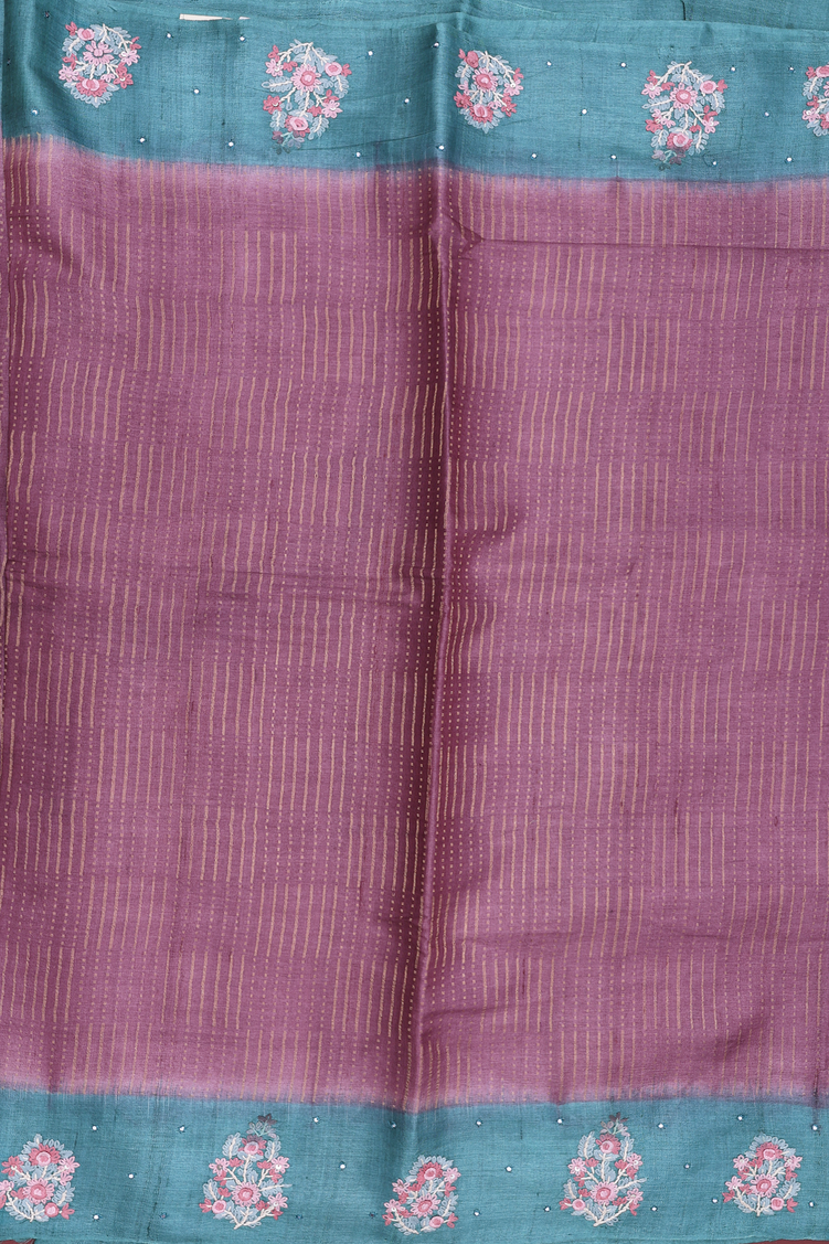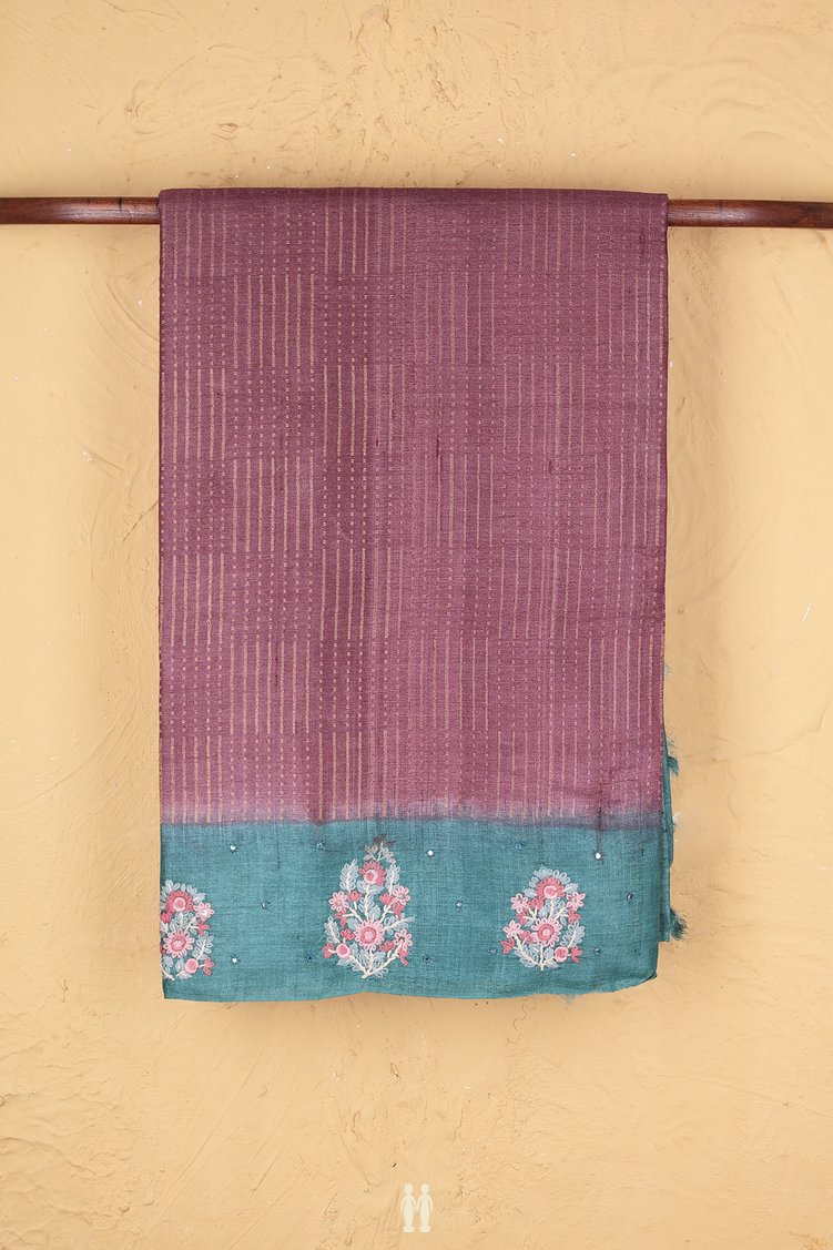 Elevate your ethnic wardrobe with this exquisite tussar silk saree in rich purple, adorned with refined stripe detailing. Tussar silk's natural texture and subtle sheen create an understated elegance perfect for both festive occasions and refined everyday wear. The striking purple hue complements all skin tones, while the geometric stripe pattern adds contemporary sophistication to traditional draping.