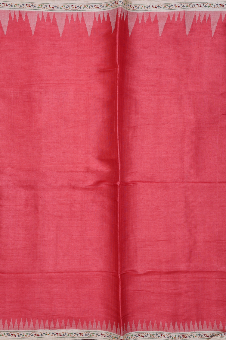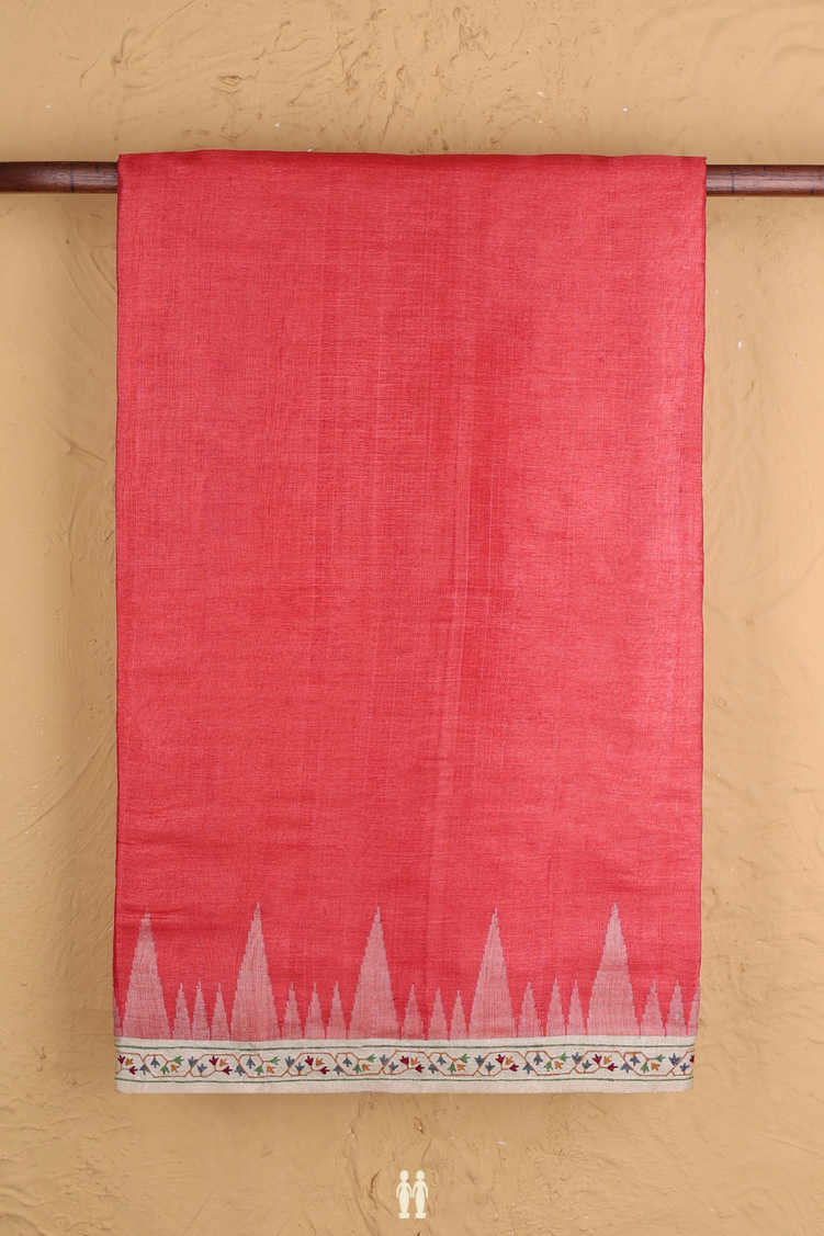 Elevate your elegance with this exquisite red tussar silk saree, featuring a striking contrast border that adds refined charm. Crafted from premium tussar silk, it offers a graceful drape and subtle sheen, perfect for special occasions. The rich texture and vibrant hues combine tradition with timeless sophistication, making it a distinguished addition to your wardrobe.