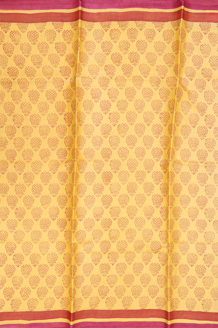 Tussar Silk Saree In Royal Yellow With Floral Design