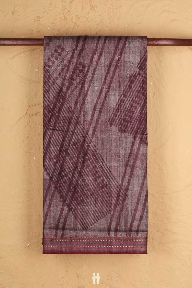 Tussar Silk Saree In Shades Of Brown With Printed Design