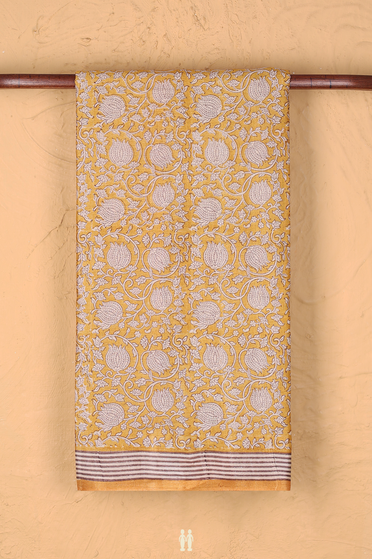 Tussar Silk Saree In Yellow With Floral Design
