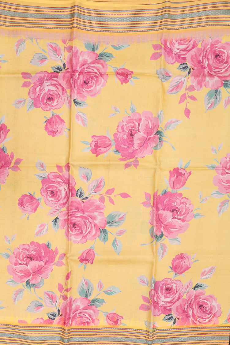 Tussar Silk Saree In Yellow With Floral Design