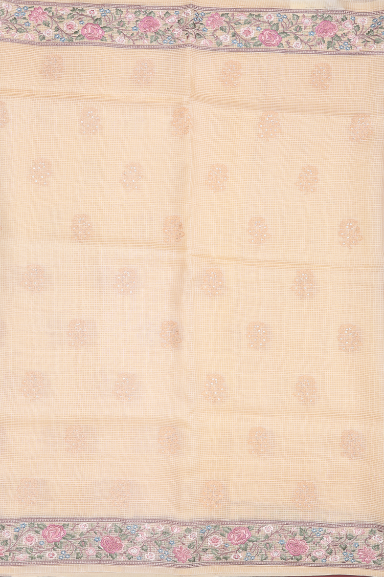 Tussar Silk Saree In Yellowish Beige With Floral Buttas