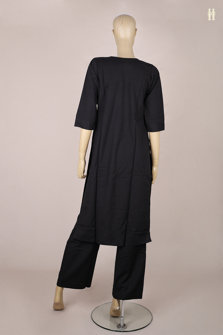 Elevate your wardrobe with this v-neck plain black cotton salwar set, crafted for comfort and understated elegance. The breathable cotton fabric ensures all-day ease, while the classic black hue and refined v-neck design offer a timeless, sophisticated look perfect for any occasion.