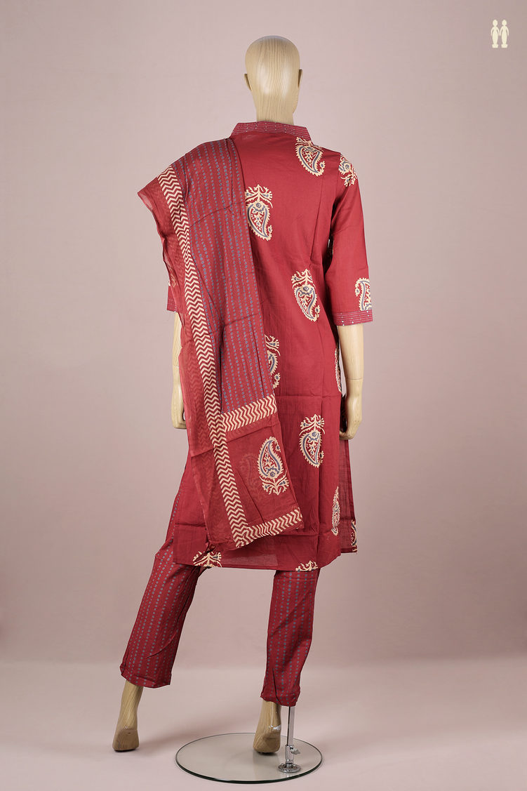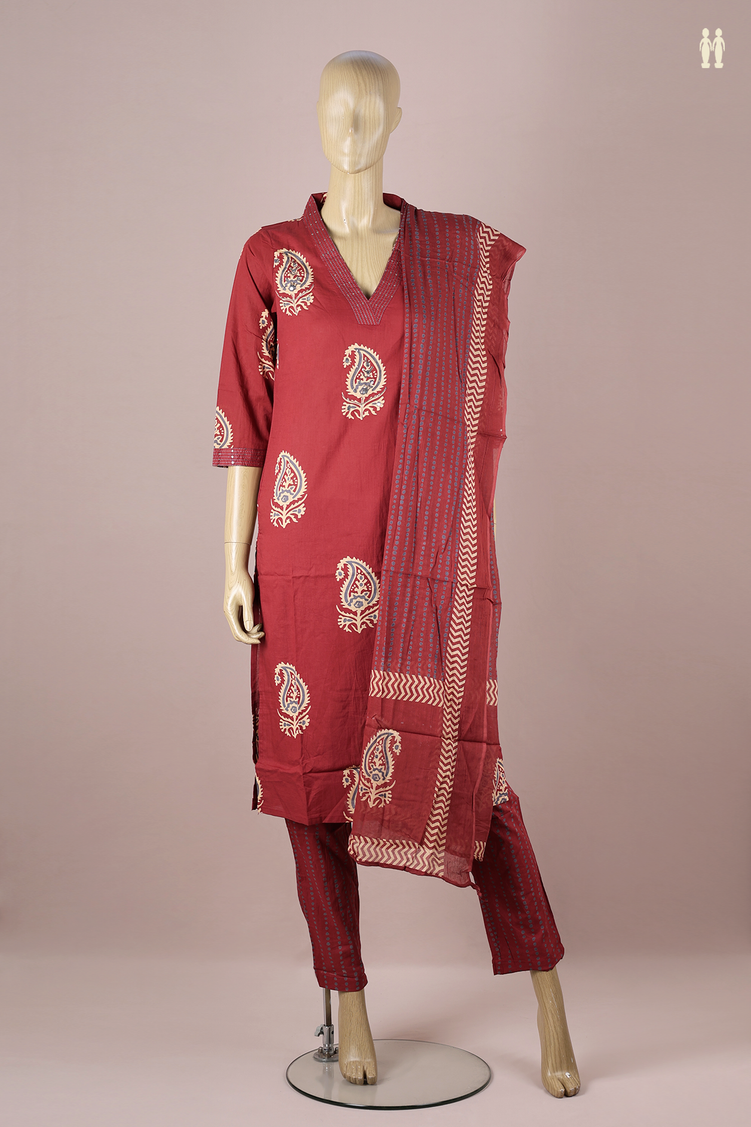 Elevate your ethnic wardrobe with this v-neck printed design red cotton salwar set. Crafted from breathable cotton, it offers all-day comfort, while the striking red hue and delicate prints add a refined touch. Ideal for festive occasions or casual gatherings, this set perfectly balances style and ease.