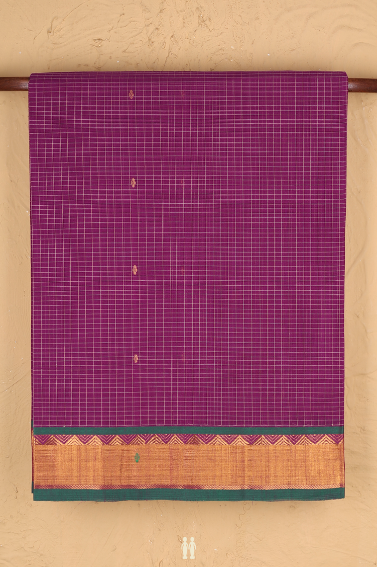 Venkatagiri Cotton Saree In Grape Purple With Checks Design