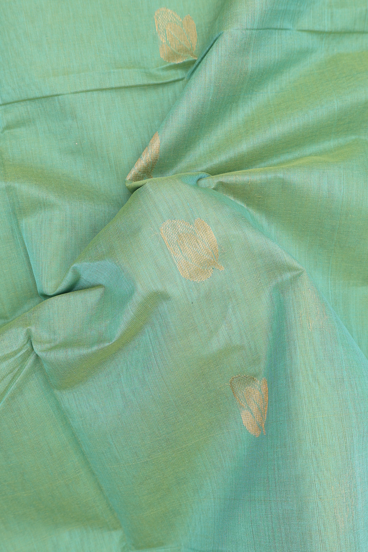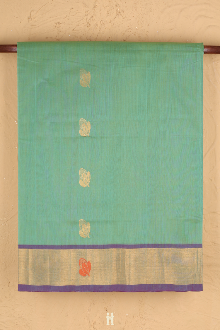 Venkatagiri Cotton Saree In Green With Zari Buttas