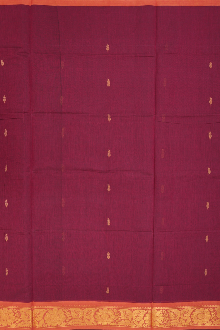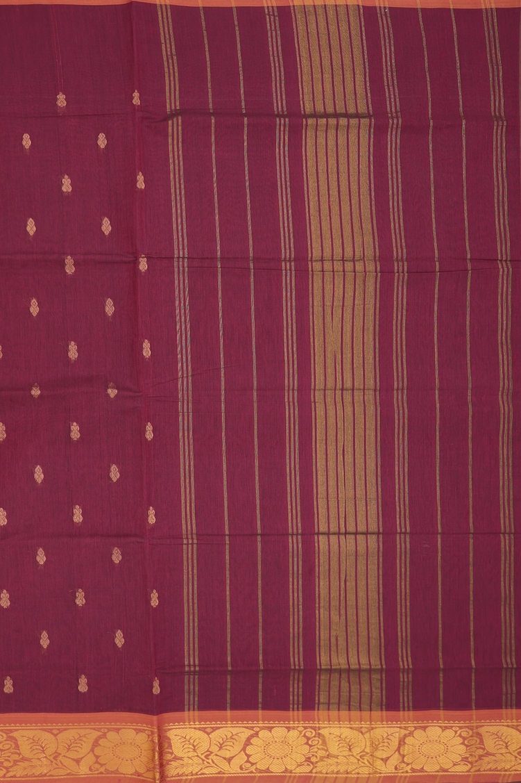Venkatagiri Cotton Saree In Mulberry With Zari Buttas