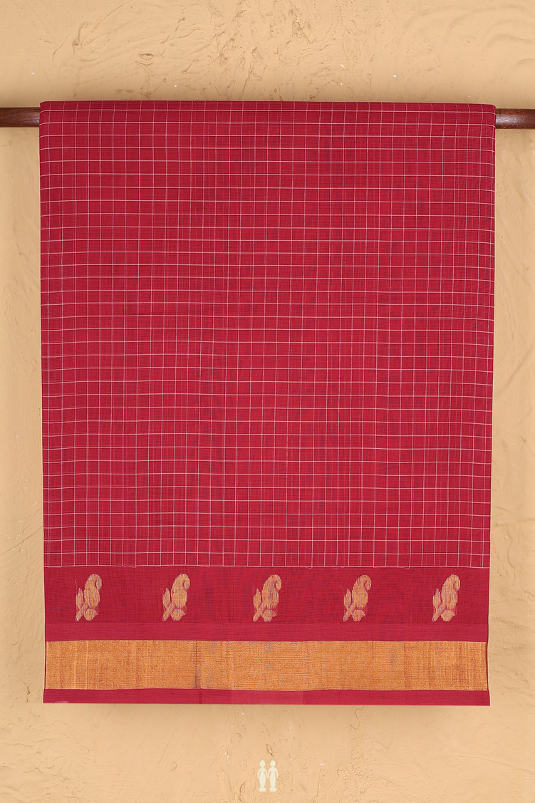 Embrace timeless elegance with the venkatagiri cotton saree in red, featuring a classic checks design. Crafted for comfort and style, this saree blends breathable cotton fabric with a striking pattern, perfect for formal occasions or graceful everyday wear. Its refined texture and vibrant hue make it an exquisite addition to your wardrobe, reflecting traditional artistry with modern sophistication.