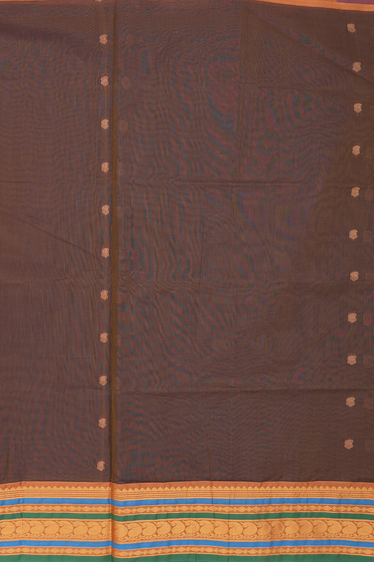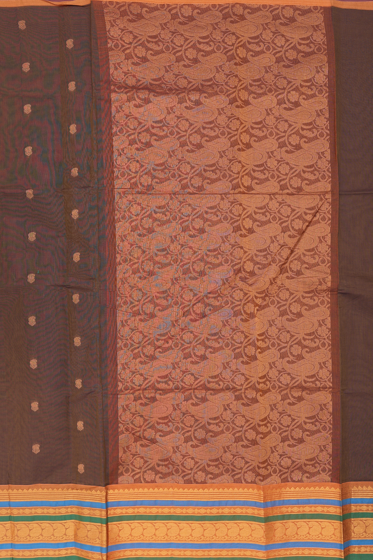 Venkatagiri Cotton Saree In Walnut Brown With Paisley Buttas