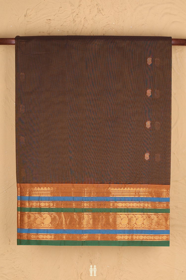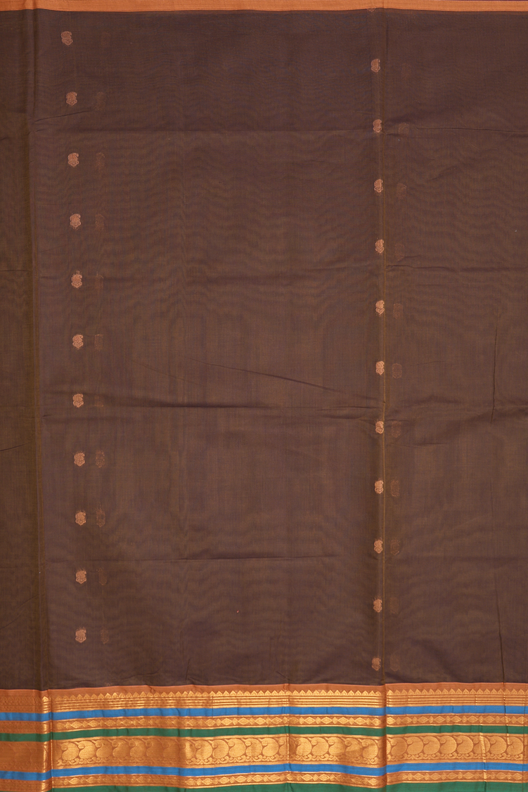 Venkatagiri Cotton Saree In Walnut Brown With Paisley Buttas