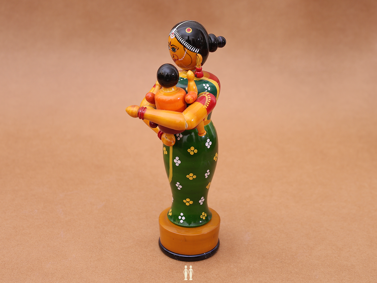 Wooden Handicraft Lady With Child For Showpiece