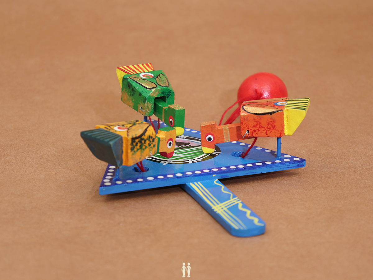 Wooden Handicraft Multicolor Feeding Birds Toy