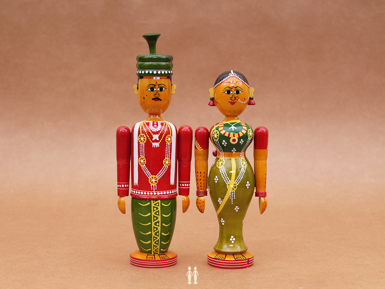 Wooden Handicraft Wedding Doll Set For Showpiece
