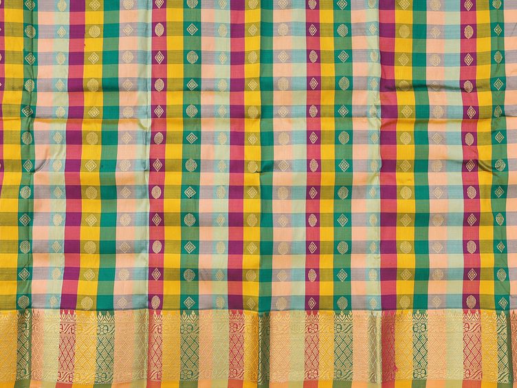 Checks Design Multicolor Kanchipuram Pavadai Sattai Material